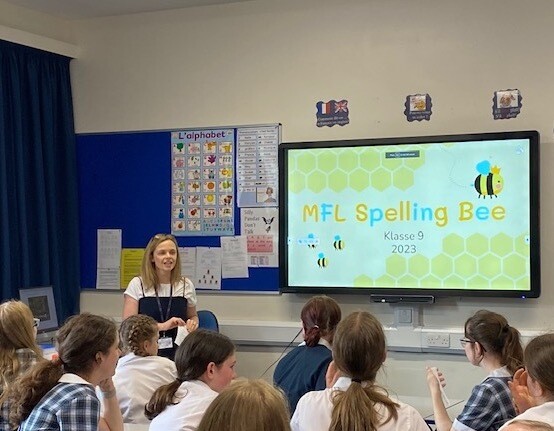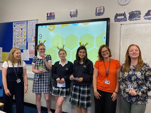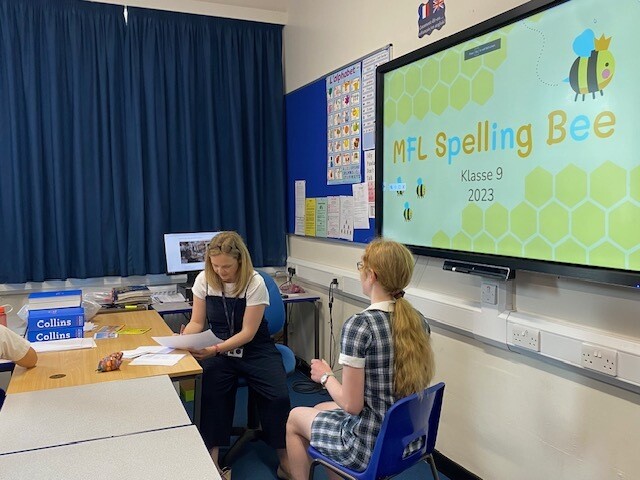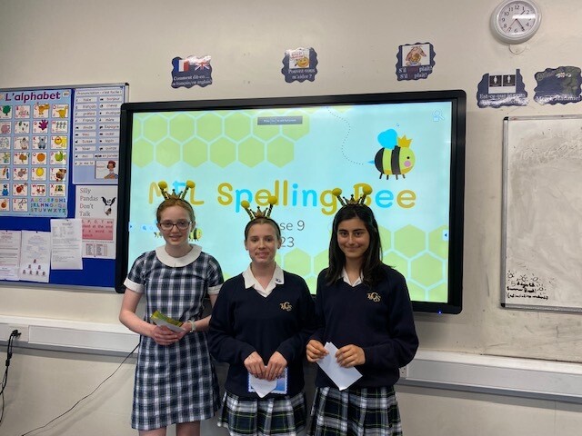 This term the MFL department organised a spelling bee competition for Year 9. After practising a range of phonics in their lessons, pupils were given a list of 30 words to learn. For round one pupils were tested in lessons and everyone was encouraged to take part in the language(s) they have chosen to study for GCSE next year. Their MFL teacher gave them a word in English which the pupils had to translate into the foreign language, pronouncing it carefully then accurately spell it out using the French, German or Spanish alphabet. Winners from round one were then invited to a final and given a new set of words to learn. The final took place on Thursday 13th July and was a tightly-fought competition which even included a tie-breaker round for two of the German finalists. We were really impressed with everyone’s efforts and delighted with the support the finalists had from their friends and fellow competitors. Huge congratulations to our final winners; Freya (French), Sakina (Spanish) and Evie (German).