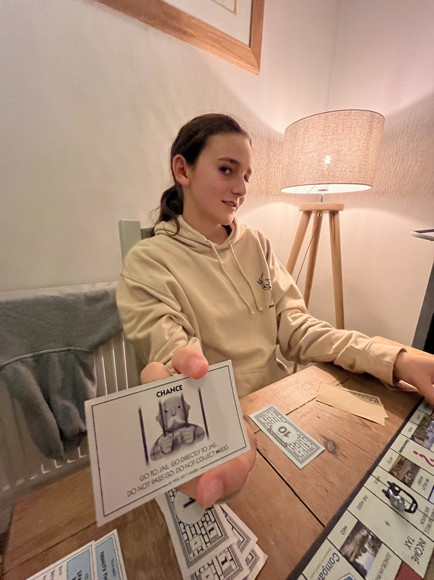 During the week, the French pupils from Champfleury visited London and then came home in the evening. In the evenings spent with our French exchanges, some people went out and some stayed at home. On one of the nights, Justine and I played monopoly whilst watching