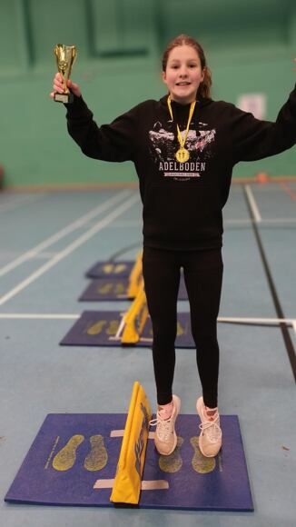 Alathaea in Year 8 represented Paddock Wood Athletics Club (PWAC) and participated in the Sportshall Athletics Kent County Individual Championships at Stour Centre, Ashford on Sunday 14th January 2024. In a very competitive field, she claimed a winner's gold medal and title of U13 Girls Kent Champion in Speed Bounce, completing 82 bounces in 30 secs. In addition, over the whole 2024 Kent Sportshall Athletics Season, Alathaea’s U13 Girls PWAC Team secured overall team Bronze Medals.