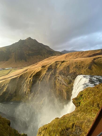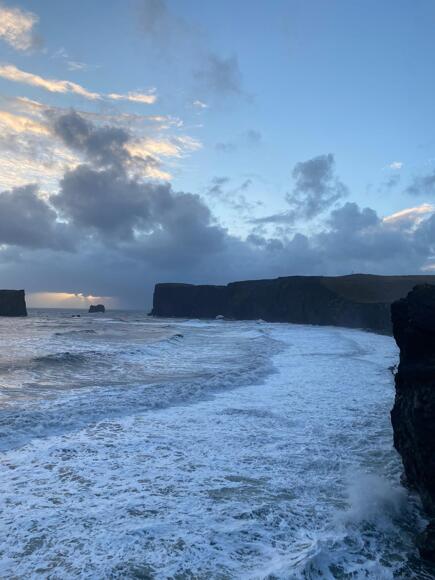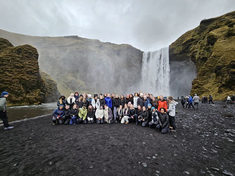On our second day, we visited the LAVA Iceland Volcano and Earthquake centre, where we engaged in various activities, such as watching an educational video which illustrated different eruptions that have occurred in Iceland overtime, examining and reading about multiple volcanic eruptions, lava flows, volcanic and rift systems, faults and glacial floods that demonstrated Iceland’s beauty yet vulnerability to hazards. Next we were taken by our driver, Rocky, and our amazing tour guide, Doddy, to Seljalandsfoss waterfall; this was easily a favourite destination for many of us and was an unbelievable feature which left many of us astounded and excited for our next location. After many photos, we set off to another waterfall, Skógafoss, which again was an incredible view and despite the steep walk to the top and us all getting absolutely soaked when we went back down and stood under the waterfall, it was an extremely enjoyable experience that I'm sure many of us will remember for a long time. Back on our way to Laki hotel, we took a short walk to see Skaftafellsjökull outlet glacier, where Doddy taught us about the glacier's history and its significant retreat due to climate change. Finally, our last stop of the day was Dyrhólaey black sand beach where, despite us all being cold from almost all of our clothes still being soaking, we were able to get some fantastic photos and appreciate the beautiful scenery.
