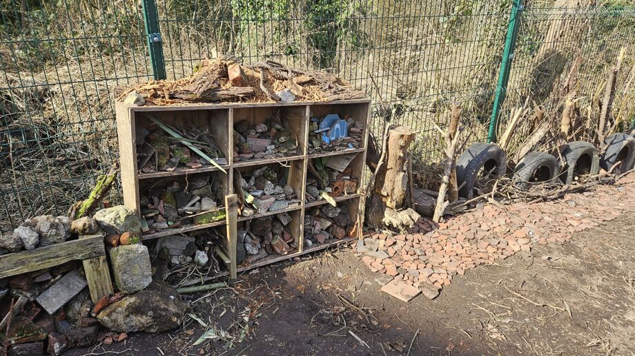 Saturday 1st March saw the first big dig for the TWGGS Community Garden. We had a fantastic turnout of parents, pupils and staff who transformed the plot, removing a very dense weed layer from the ground and fence line, and turning the ground over ready for levelling. The process of deconstructing old pallets to turn into raised beds was started, and large amounts of rubble were removed from the ground with regular visits to the tip made all morning due to volume of material removed. On Saturday 8th March, we levelled the ground and commenced building several raised garden beds. A 'wild' area was constructed with a variety of different bug mansions, a hedgehog house and Solitary Bee stumps. This Saturday 22nd will include getting the weed proofing layer down with wood chip top, and finishing as many raised beds as possible, filled with top soil.