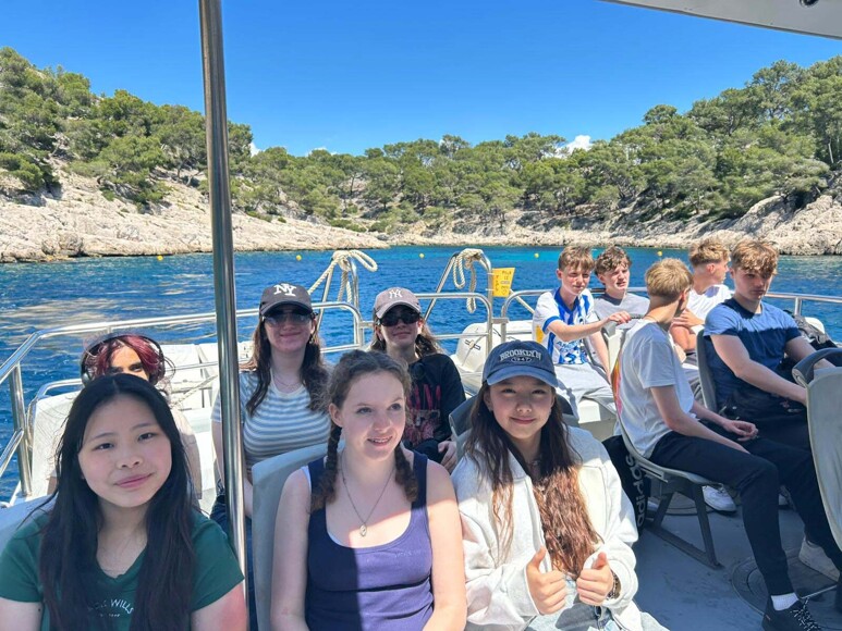 Day 1: We arrived at Marseille airport and drove to Cassis. The town was very beautiful, with amazing views of the sea and cliffs. We walked around and took a boat tour around Les Calanques, which was a great way to see the coastline. Later, we drove back to Avignon to meet our exchange partners.