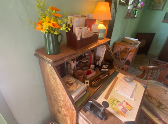 During the course of the afternoon, we had the opportunity to explore Woolf’s sitting room, dining room, bedroom, and garden writing room – which represents the feminist idea that in order for a woman to be able to write a novel, she needs a ‘room of her own’, as articulated in her 1928 essay A Room of One’s Own. We then ventured into the beautiful gardens that inspired so much of the floral imagery and symbolism found in Mrs Dalloway. As our visit coincided with the week in which ‘Dalloway-Day’ (the imagined third Wednesday of June 1923 on which the entire novel is set) is celebrated, the house was decorated with floral displays, too.
