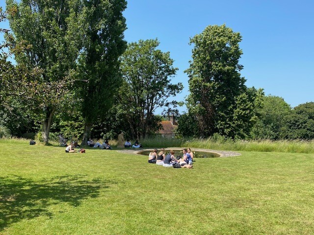 We were blessed with a sunny (and very hot!) afternoon, so we had the opportunity to picnic by the pond in the garden of Monk’s House, with views stretching across the South Downs to Firle Beacon, listen to some readings of the novel, delivered by one of the venue’s friendly, knowledgeable volunteers, and undertake some of our own further explorations of Woolf’s writing, taking in entries from her diary, personal letters relating to her writing process and inspiration and further extracts from Mrs Dalloway, A Room of One’s Own, and the short story ‘Mrs Dalloway in Bond Street’.