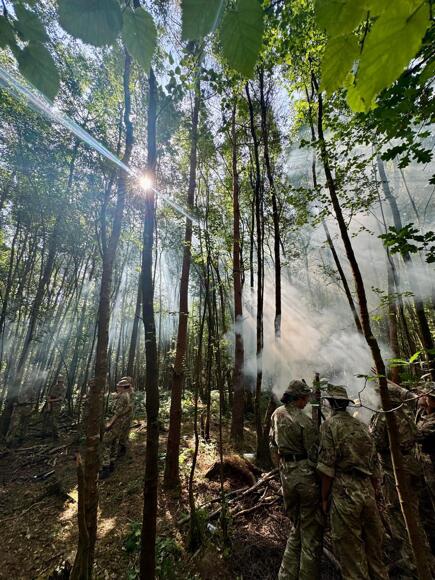 And then suddenly our last day came along, and the owner of the wood, Jordan, taught us a lesson on leadership and standards and values. After being in the army for 22 years, he had a whole host of stories as well as many wise words to share with us, giving us his real life experiences that proved the importance of the standards and values we aim to uphold. For our final activity, jungle camps were built by each section, including an A-frame bed, an emergency fire and signal fire, a water filter and collector and a gill fishing net, all within an hour and a half. However to make things more challenging, section commanders were the only people shown the exemplar jungle camp and taught how to build each component, and then when they returned to their sections they were not allowed to touch any of the equipment. This was an excellent command task teaching cadets how different people learn differently and how challenging it can be to purely rely on our words to teach.