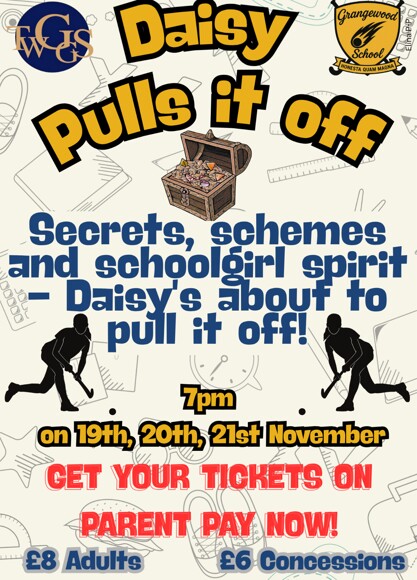 It has been an absolute blast working on Daisy Pulls it Off! with our incredibly talented cast and crew. A joyous play about the adventurous Daisy who has joined the outlandish Grangewood School for Girls. Come along for an evening of wit, laughter and comedy! Tickets for the performances on 19th, 20th and 21st November are still available via ParentPay but they're selling fast! Priced at £6 for children, £8 for adults, snap yours up now before they sell out. Doors open at 6:40pm for a 7:00pm start.
