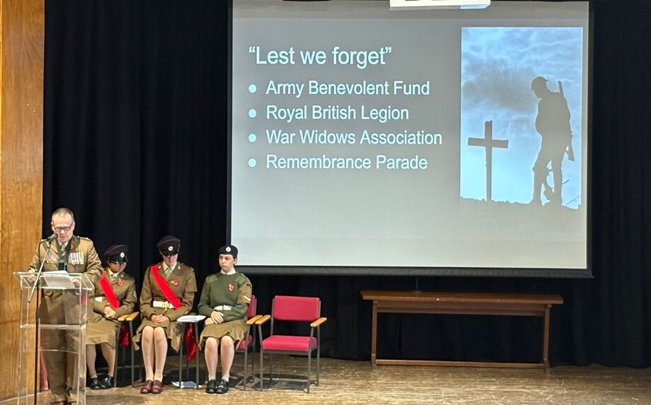 We also received some lovely feedback from a parent, Mrs Williams, who spoke with Duncan, the Standard Flag bearer at the Remembrance Day Service. She said, 'I stopped him to say how wonderful the service had been and that we had been there to support TWGGS and CCF. Duncan said what a credit TWGGS CCF are to the school and our community, how impeccably and beautifully they carry out their duties, and their marching skills are like no others — and I agree. They are magnificent. It turned out Duncan's wife was a Twiglet too, and he said how proud it makes her each year.'