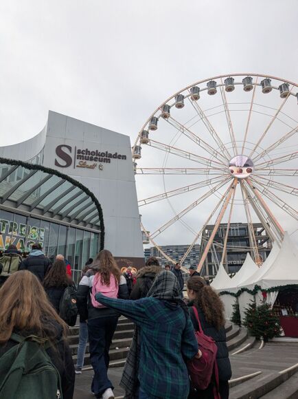Some of Year 10 went on the exchange to Germany recently, where we visited sights such as the Cathedral in Cologne, and the Beethoven house, but most importantly we visited the Lindt factory, Haribo shop and the Lindt museum! It was such a great experience to spend a week with another family, immerse ourselves in their culture and join them in their daily lives. We filled our weekend with activities including ice skating, baking and visiting Christmas markets, in which I am certain everyone enjoyed a mug of hot chocolate or Kinderpunsch (a traditional warm, non-alcoholic German punch served during the Christmas season). The coach journeys there and back were full of excitement, music and Christmas spirit and hopefully we didn’t annoy the teachers too much! The general day-to-day was amazing, ranging from spending some time in Clara-Fey Gymnasium itself and experiencing lessons with our partners, or getting the train over to Cologne and having some free time to shop and explore! We even got to have interviews with some of the younger pupils, who were very welcoming and enjoyed asking us some random questions, and some on topic. Our exchange partners were all incredibly welcoming and planned the perfect meals and activities to keep us busy in our free time! A huge thank you must go to the teachers who came on such an incredible trip, Frau Wheeler, Frau Charlton, Frau Unwin and Frau Rogers! Our stay was something that we will remember for the rest of our lives, and we cannot wait for our partners to come back in March!